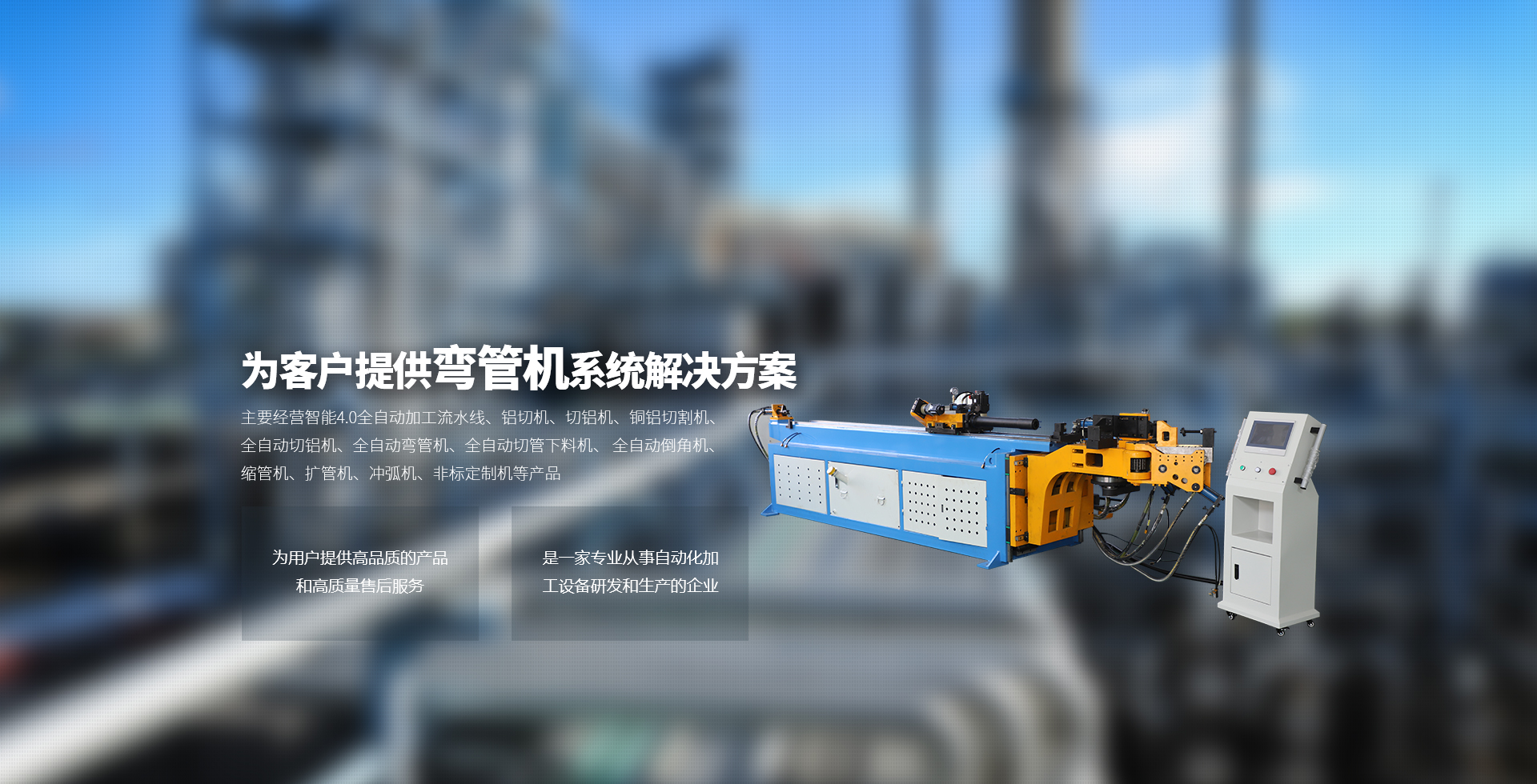 主要經(jīng)營智能4.0全自動加工流水線、鋁切機、切鋁機、銅鋁切割機、全自動切鋁機、全自動彎管機、全自動切管下料機、 全自動倒角機、縮管機、擴管機、沖弧機、非標(biāo)定制機等產(chǎn)品